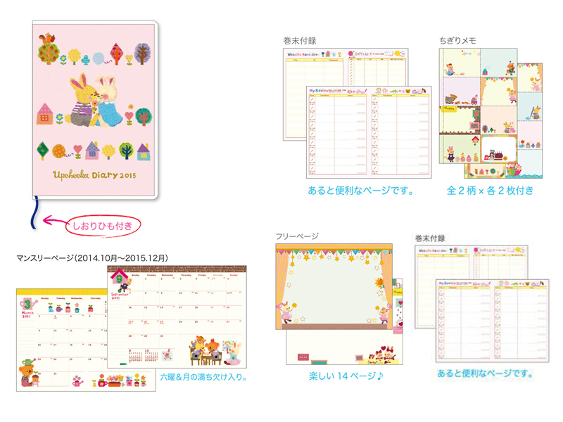 2015年手帳㈱オリエンタルベリーより11月より発売中。アプチェカワールドでいっぱいの手帳です。 2014年11月発行 オリエンタルベリーA6手帳 2種類絵本手帳 1種B6絵本手帳 2種